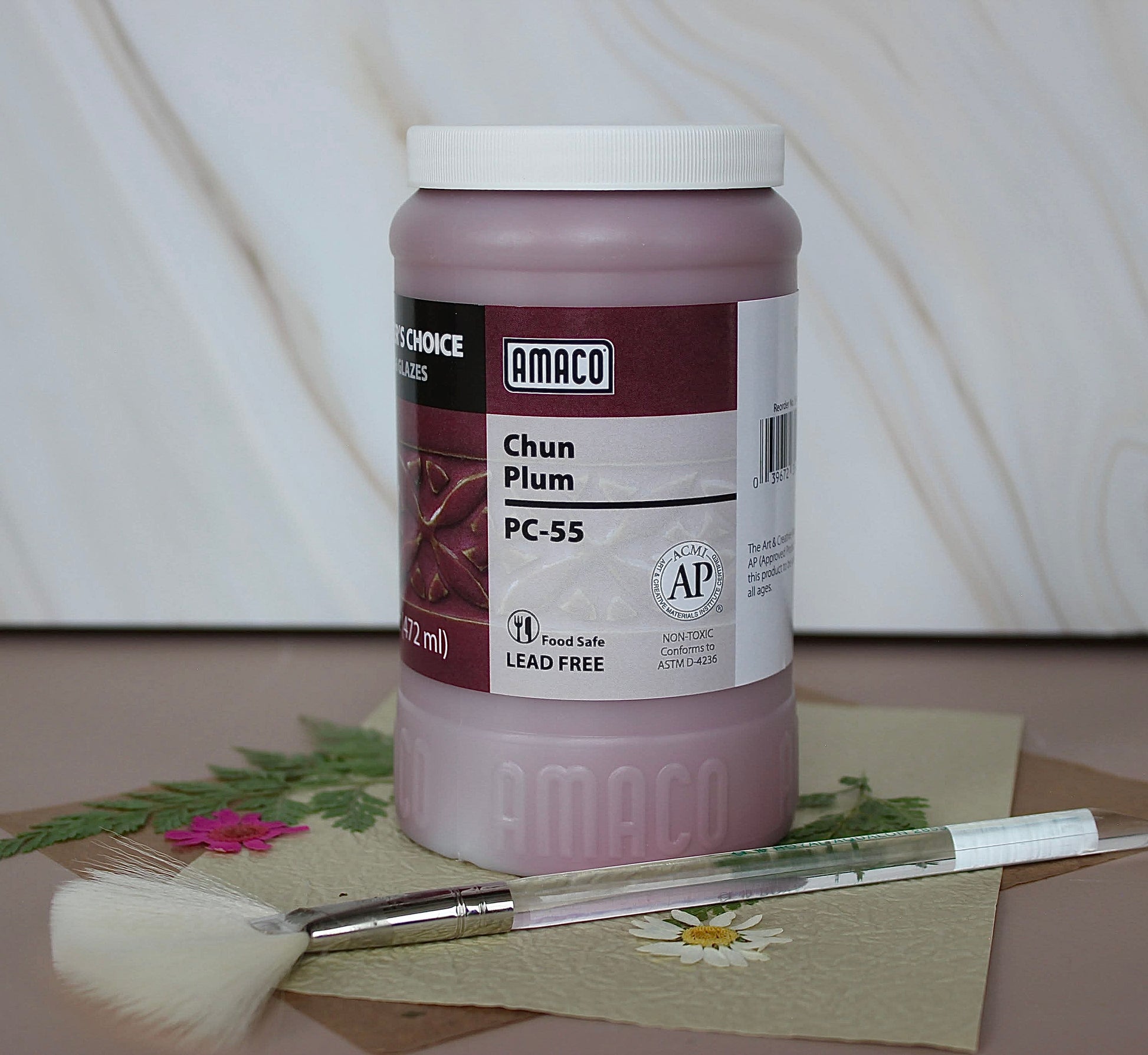 Chun Plum (Amaco PC‑55) is a luminous, translucent glaze that layers soft pink and lavender hues over a milky base. Subtle crystal blooms and warm blush tones appear on ridges and high points, creating a romantic, ethereal finish. Gorgeous alone or layered with other glazes for dynamic color depth.