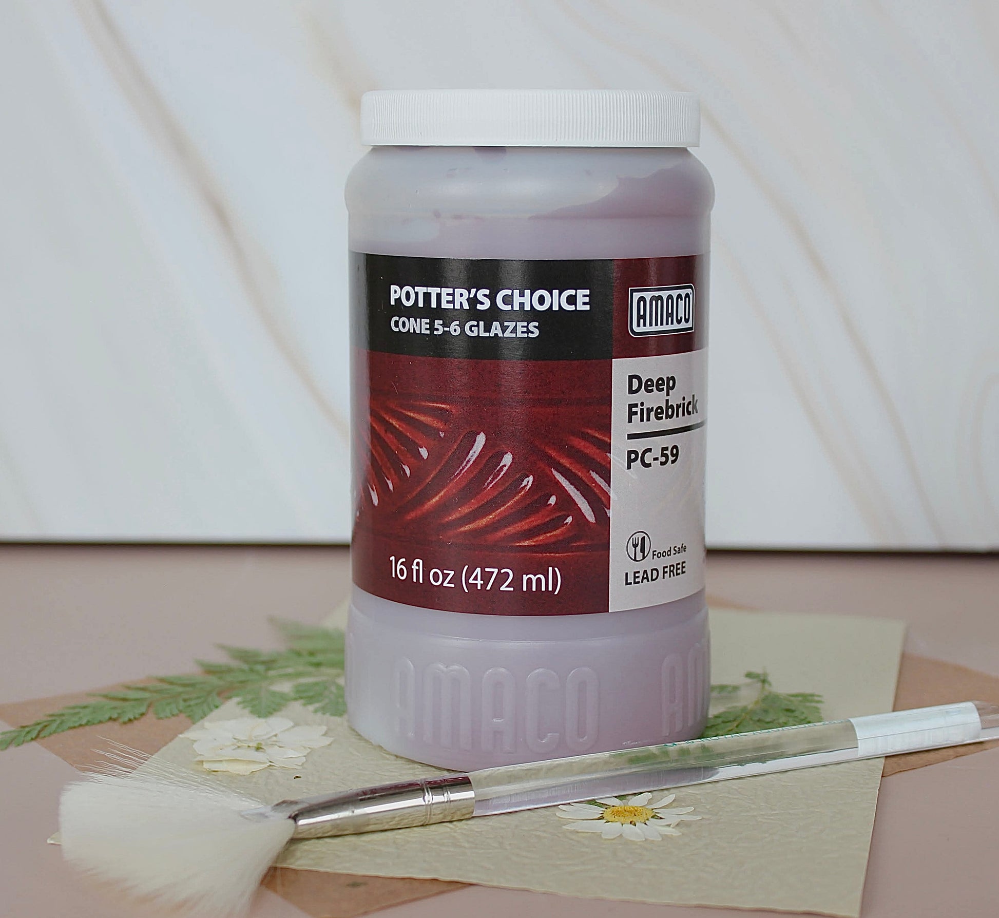 Deep Firebrick (Amaco PC‑59) is a rich, glossy glaze that fires to a bold, dark red with subtle black and brown undertones. It delivers a strong, dramatic finish that enhances detail. Especially beautiful on dark or textured clay bodies.