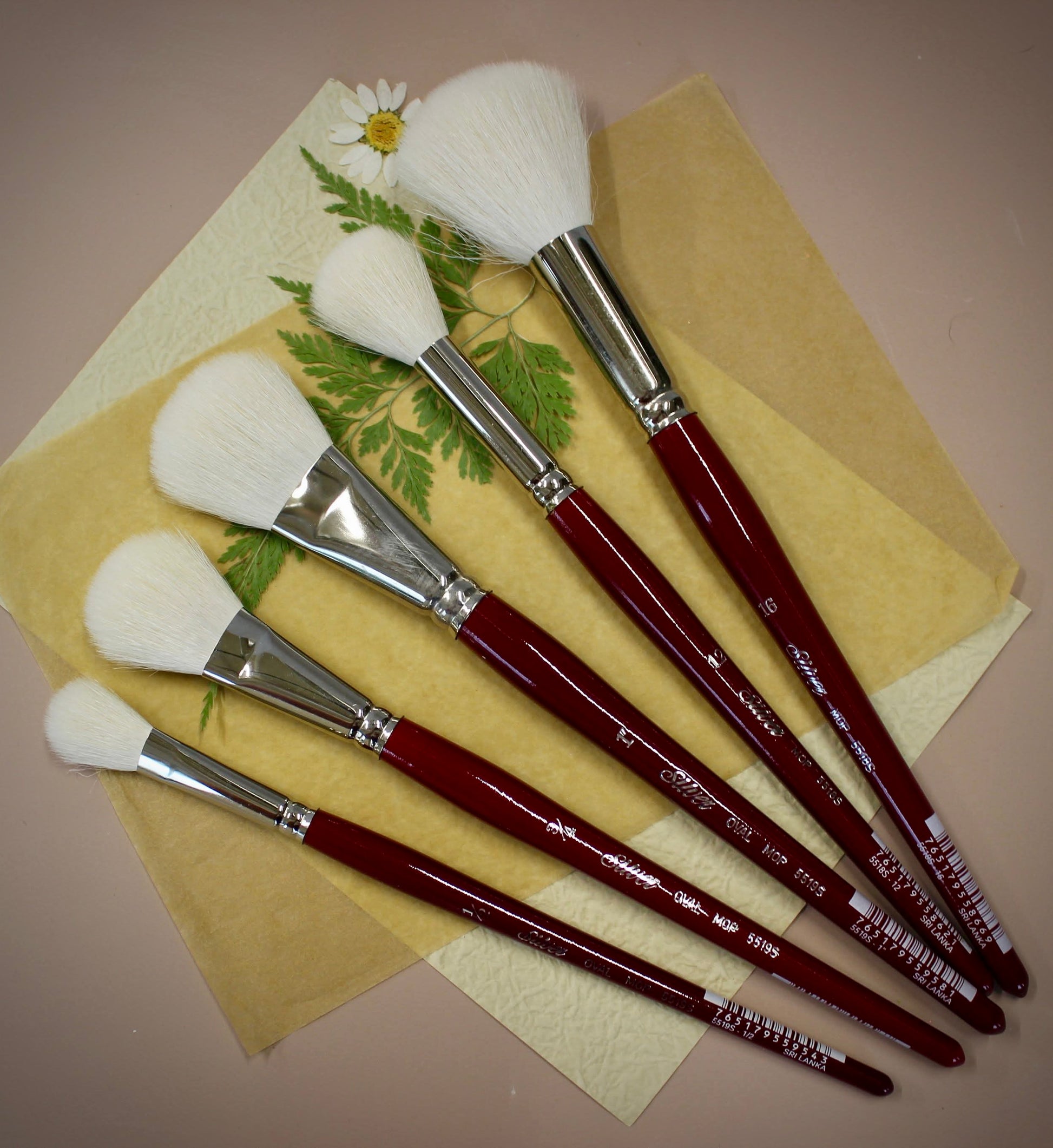 Soft and compact. Best for brushing glaze on cups, test tiles, or small bowls. -
