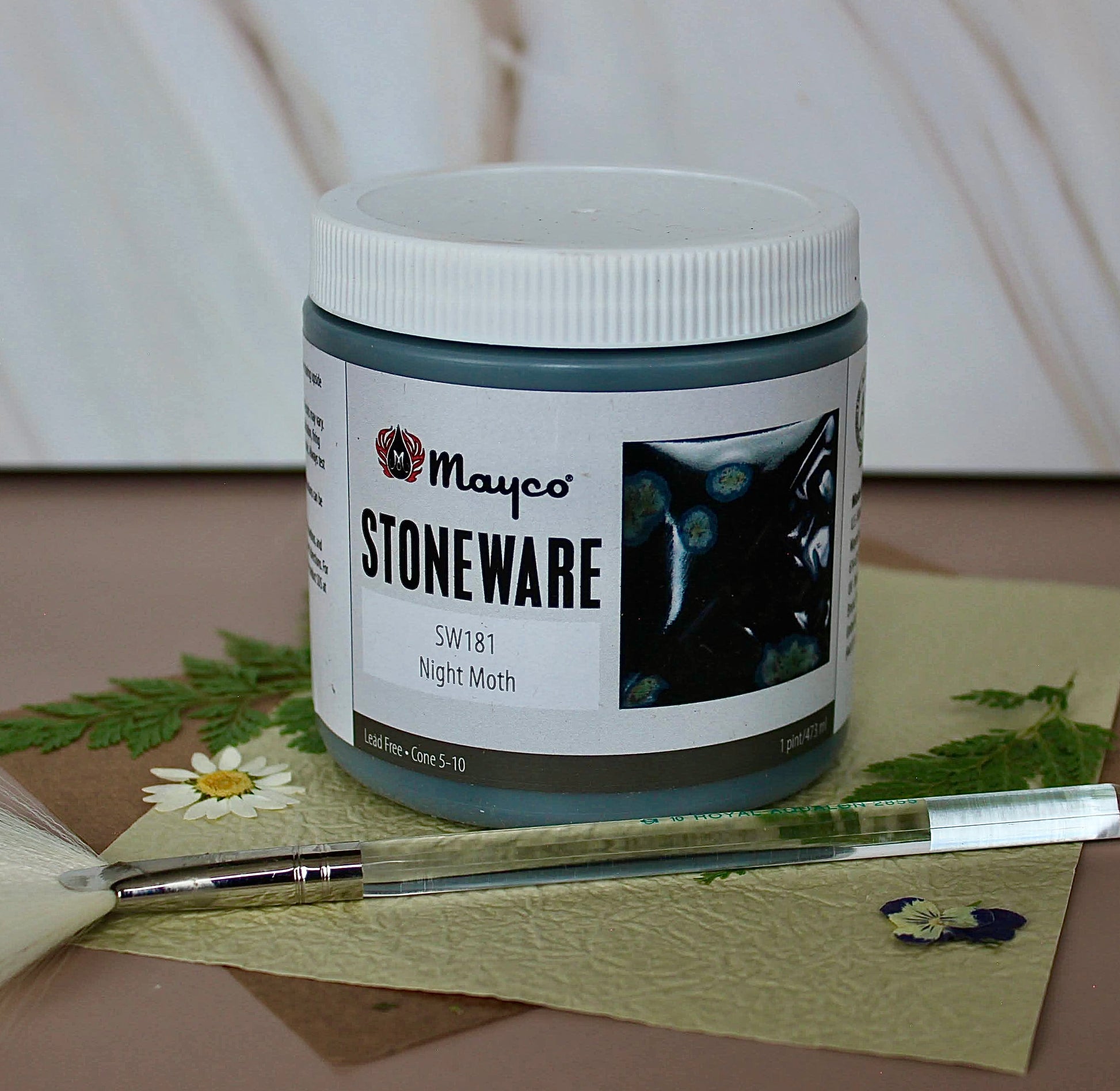 Night Moth (Mayco SW‑195) is a deep, moody glaze with a black-violet base and bursts of shimmering blue and silver crystals. At Cone 5/6 in oxidation, it creates a mysterious, starry effect with strong movement and dynamic color transitions. Cone 10 firings deepen the base to an even richer tone and enhance the metallic flecks.