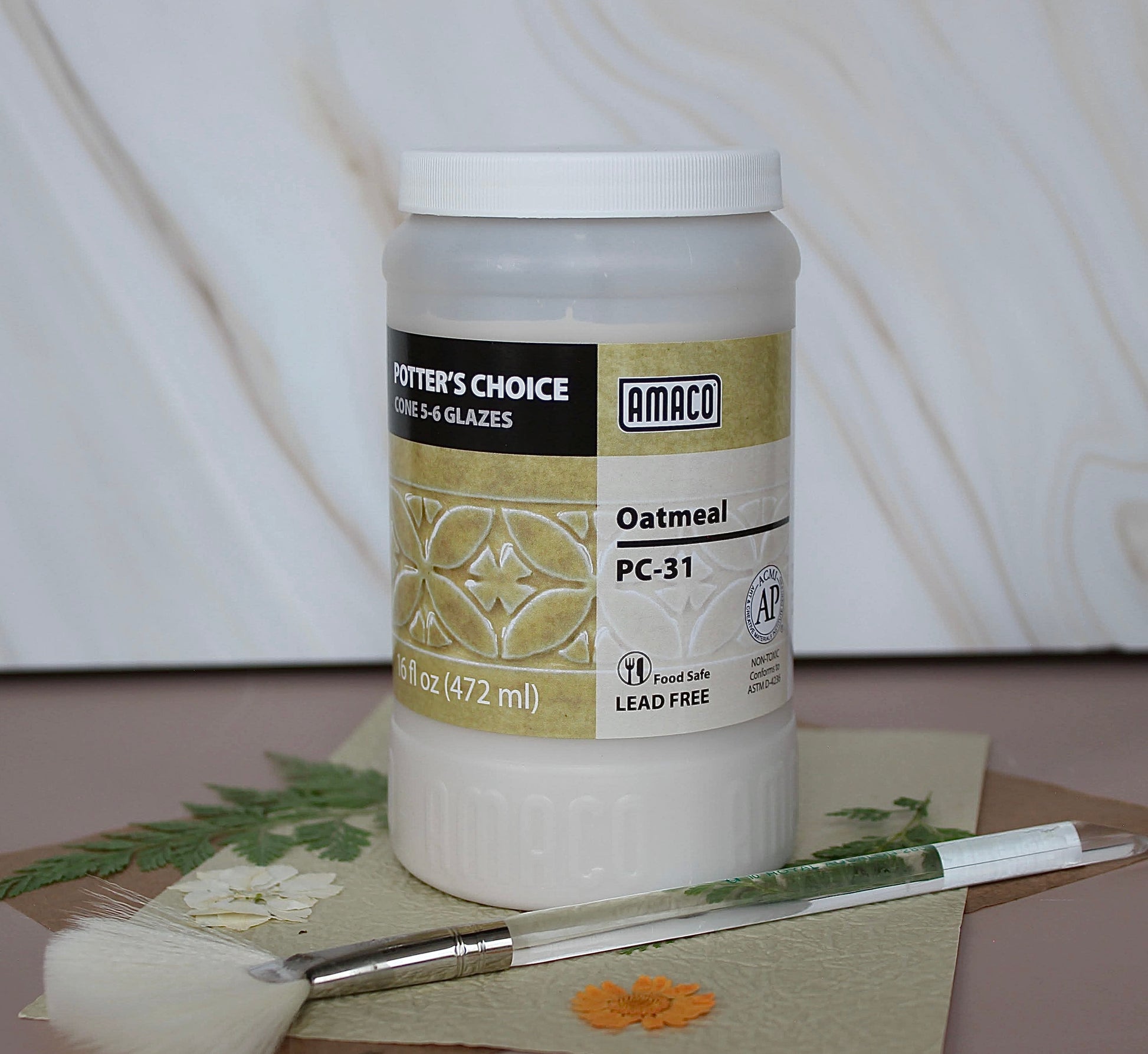 Oatmeal (Amaco PC‑31) is a creamy, off-white glaze with subtle flecks that break warm and toasty over texture. It offers soft, organic variation, layering beautifully with other Potter’s Choice glazes or standing alone for a smooth, natural finish. A go-to for earthy, understated warmth on both light and dark clay bodies.