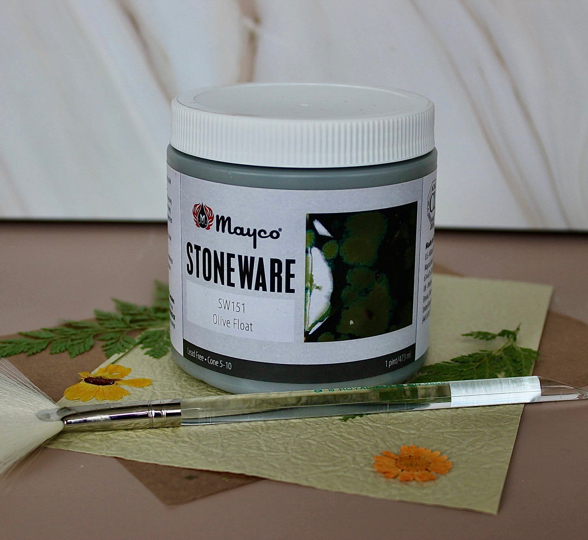 Olive Float (Mayco SW‑186) is a rich, earthy glaze with a mossy green base and floating accents of rust, amber, and brown. Its layered, variegated finish brings organic warmth to any form, especially on textured or carved surfaces. Crystal accents add beautiful specks and transitions that come alive in the final firing.